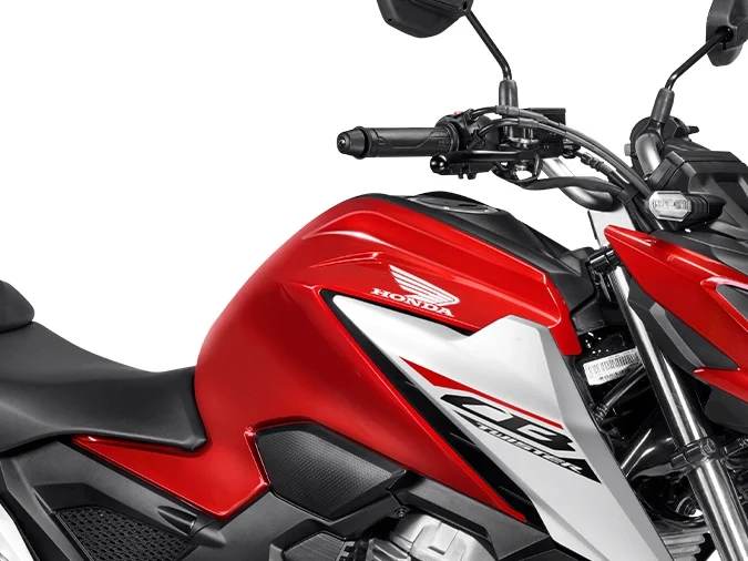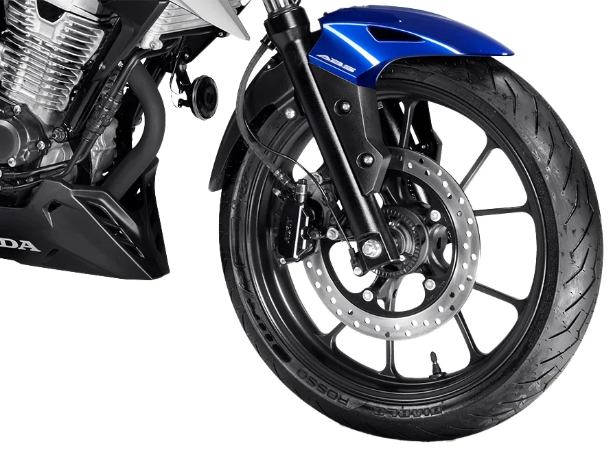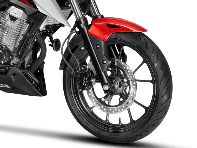 A CB 300F Twister CBS alia tradição e eficiência para oferecer um sistema de frenagem de alta qualidade, garantindo respostas rápidas e consistentes, perfeitas para o dia a dia urbano.
