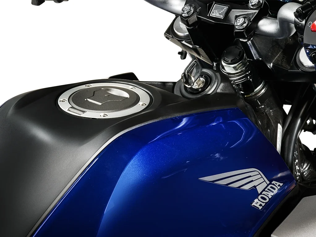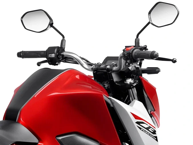 Inspirada nas motos de alta cilindrada, a tampa do tanque oferece um toque de sofisticação ao design, complementando a identidade da moto.