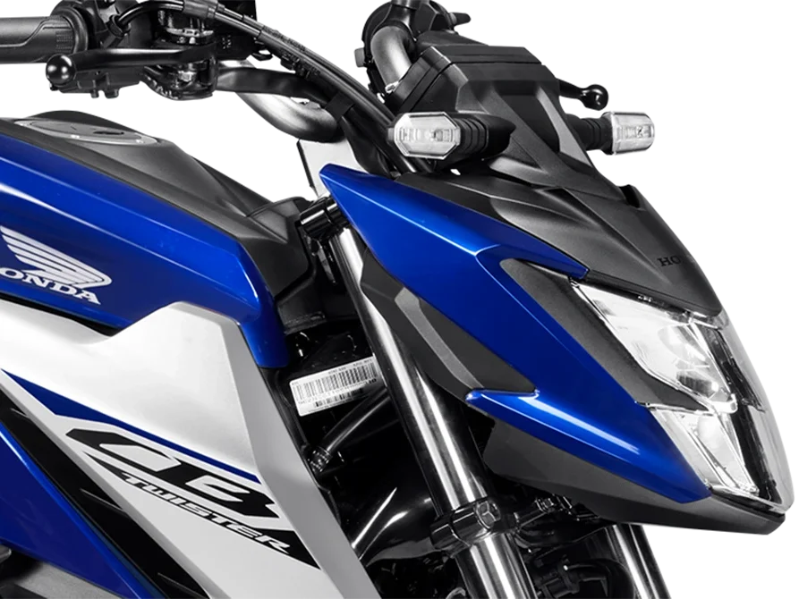 A CB 300F Twister traz um design ousado e futurista, com linhas dinâmicas que refletem sua personalidade esportiva e inovadora.