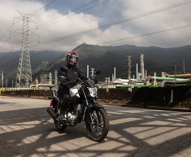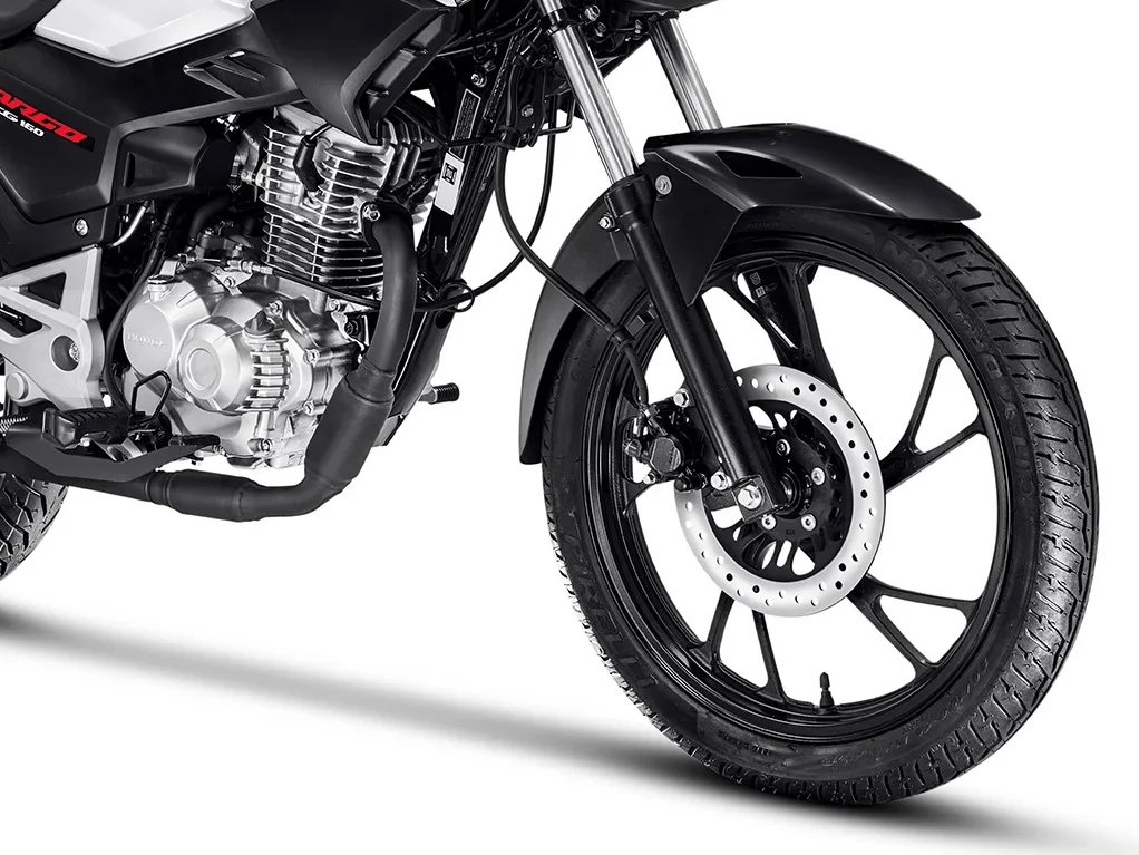 A suspensão da CG 160 Cargo oferece mais conforto e estabilidade, garantindo uma pilotagem suave para o dia a dia.