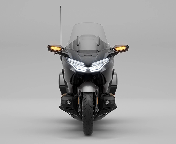 A Gold Wing Tour é equipada com tecnologias de segurança de ponta. O sistema de airbag de fábrica é uma inovação exclusiva, enquanto os freios ABS combinados e o Emergency Stop Signal (ESS) proporcionam uma frenagem segura e precisa.