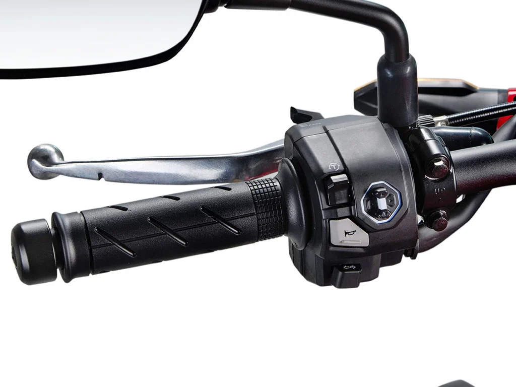 Um novo seletor multifuncional da Honda Hornet 500 foi projetado para o punho de comando esquerdo do guidão da moto. O seletor de 4 direções facilita as operações de forma intuitiva. Além disso, o interruptor seletor de 4 direções é iluminado por LED para uma sensação premium e facilidade de uso.
