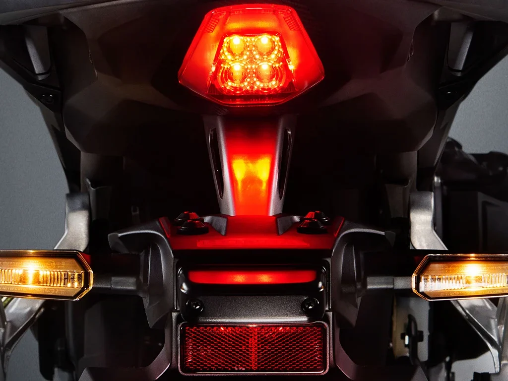 O sistema de iluminação FULL LED garante maior durabilidade ao conjunto de iluminação, além de marcar as luzes como parte do design da Hornet 500.