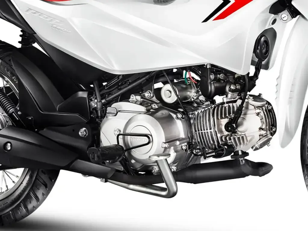 Câmbio semiautomático e rotativo de 4 marchas. Na Pop 110i ES, pilotar pela cidade é muito mais fácil e prático.